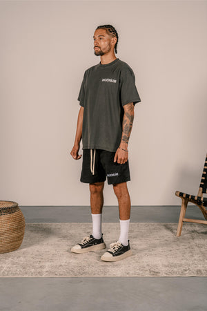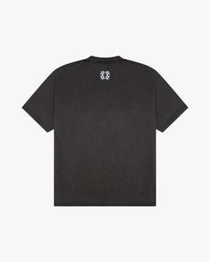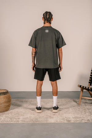 Made from Heavyweight cotton, it offers a dense yet soft feel that holds its shape over time. The distressed collar and hem bring a vintage, lived-in look—while the bold front print marks the beginning of the journey and the mindset that built the brand.
