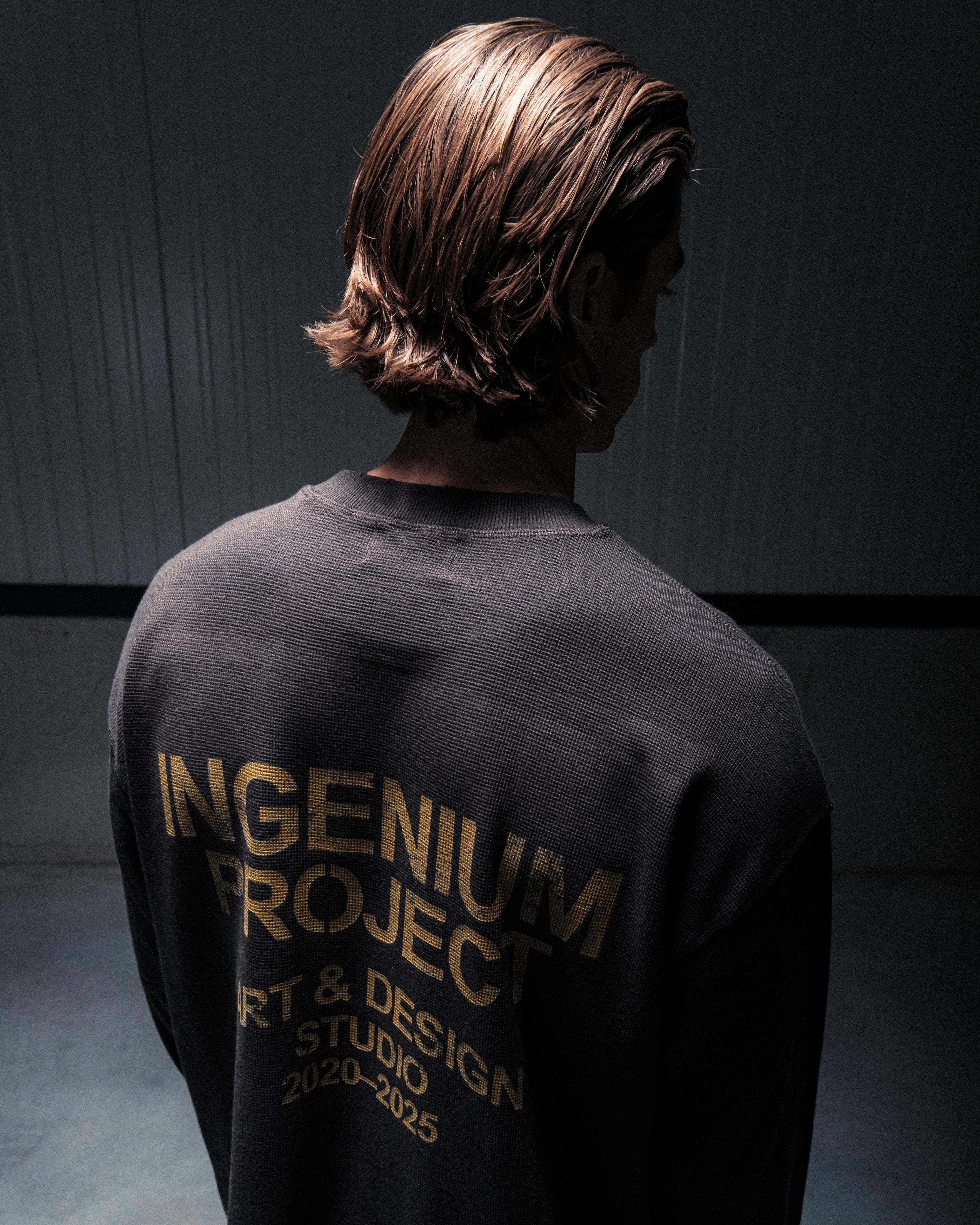 A community favourite returns. The Ingenium Project design is reimagined on a heavyweight waffle longsleeve—bringing structure, warmth, and purpose to a piece built for the ones who move with vision. Raw, lived-in, and unapologetically industrial.