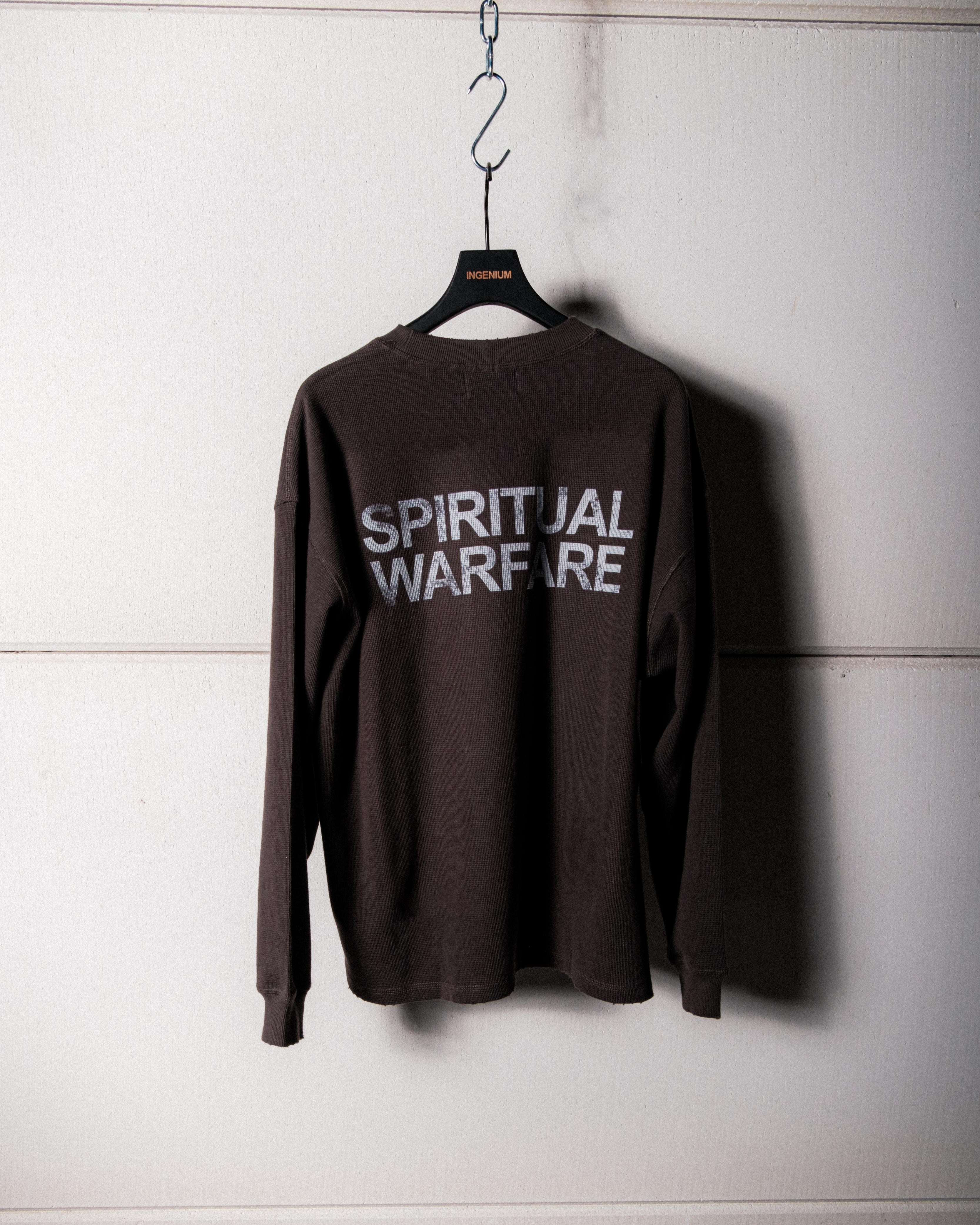 A piece born from conflict. The Spiritual Warfare Waffle Longsleeve visualizes the internal battles we all face—between doubt and power, light and darkness. Printed with raw energy, this design captures the essence of our fall/winter storyline in a heavyweight, worn-in form.